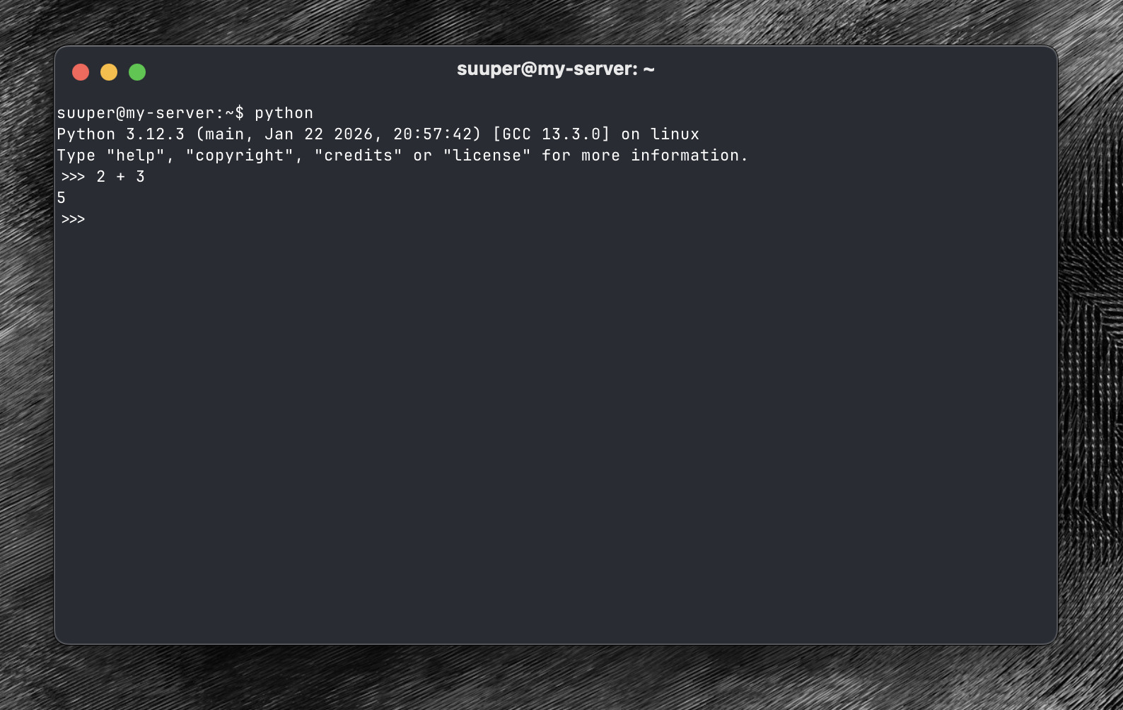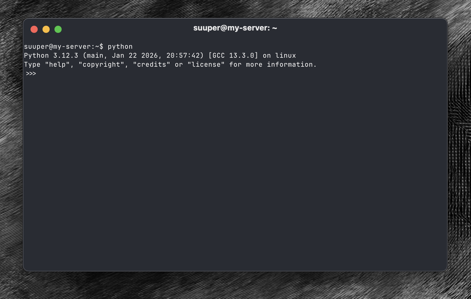 Type python, hit enter and you should see something like this: