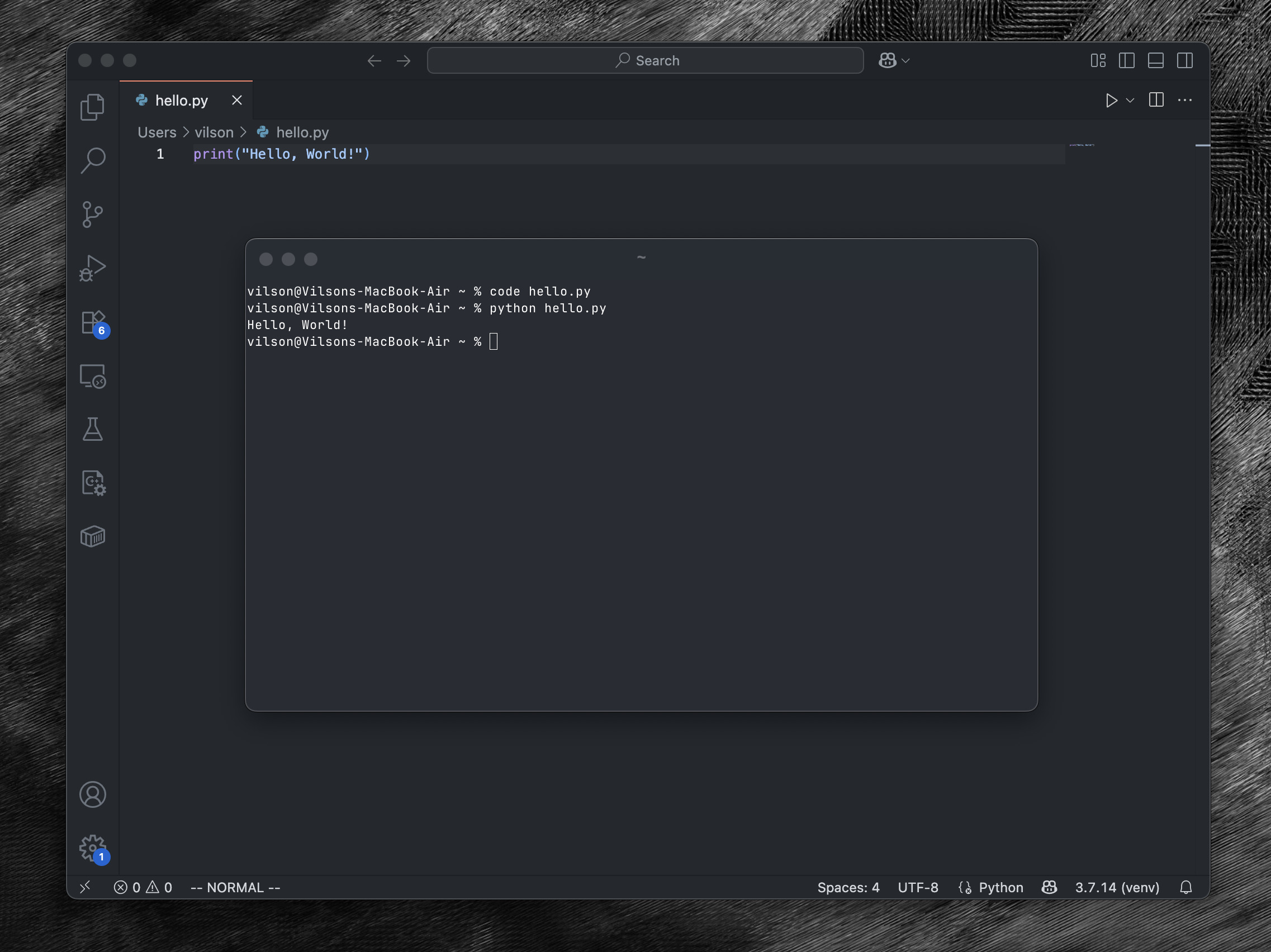 Go back to the terminal and type python hello.py. And you should see the output: